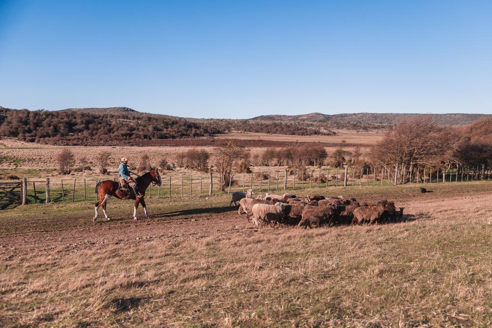 Ya por la tarde comenzamos las actividades que constan de tres partes: primero ensillamos los caballos para subir al mirador “Mar & Montaña” donde observaremos tanto el Océano Atlántico como la Cordillera de los Andes. Al finalizar la cabalgata descendemos a pie hasta el casco donde nos espera un arreo de ovejas para entrarlas al Galpón de Esquila Centenario que posee la estancia. Y para culminar estas actividades un rico y completo te nos espera en el comedor de la casa principal.